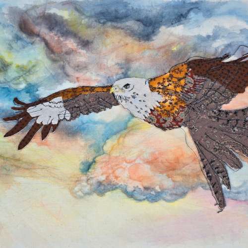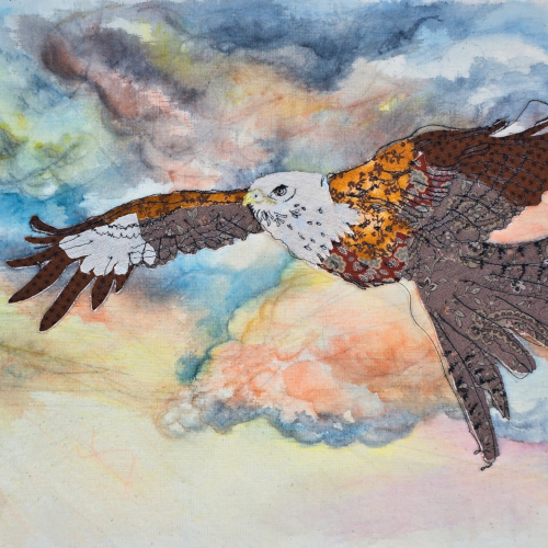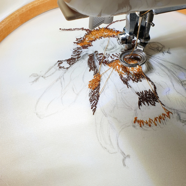These are some of my recent textile art pieces. I made these using free motion embroidery, also called free machine embroidery or freehand machine embroidery, which essentially uses the sewing machine like a pen to draw with, by moving the fabric around under the presser foot. I love to use black thread, as it reminds me of drawing with ink, and then combining different materials for texture and colour, and hand painting details.